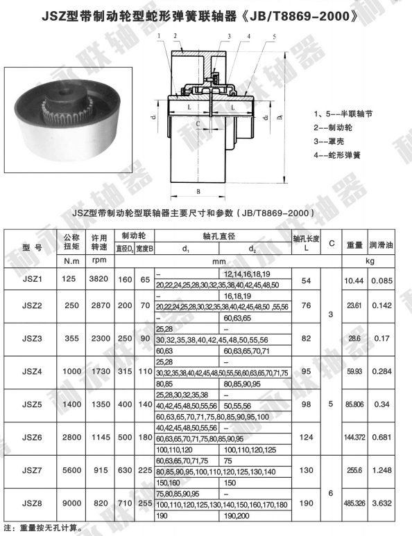 -JS型蛇形彈簧聯軸器是一種結構 的金屬彈性聯軸器。它以蛇形彈簧片軸向嵌入兩半聯軸器的齒槽內,來實現原動機與工作機的聯接,由于簧片的 性能,從而很大程度上避免了原動機與工作機的共振現象,使用壽命遠高于非金屬彈性元件聯軸器;